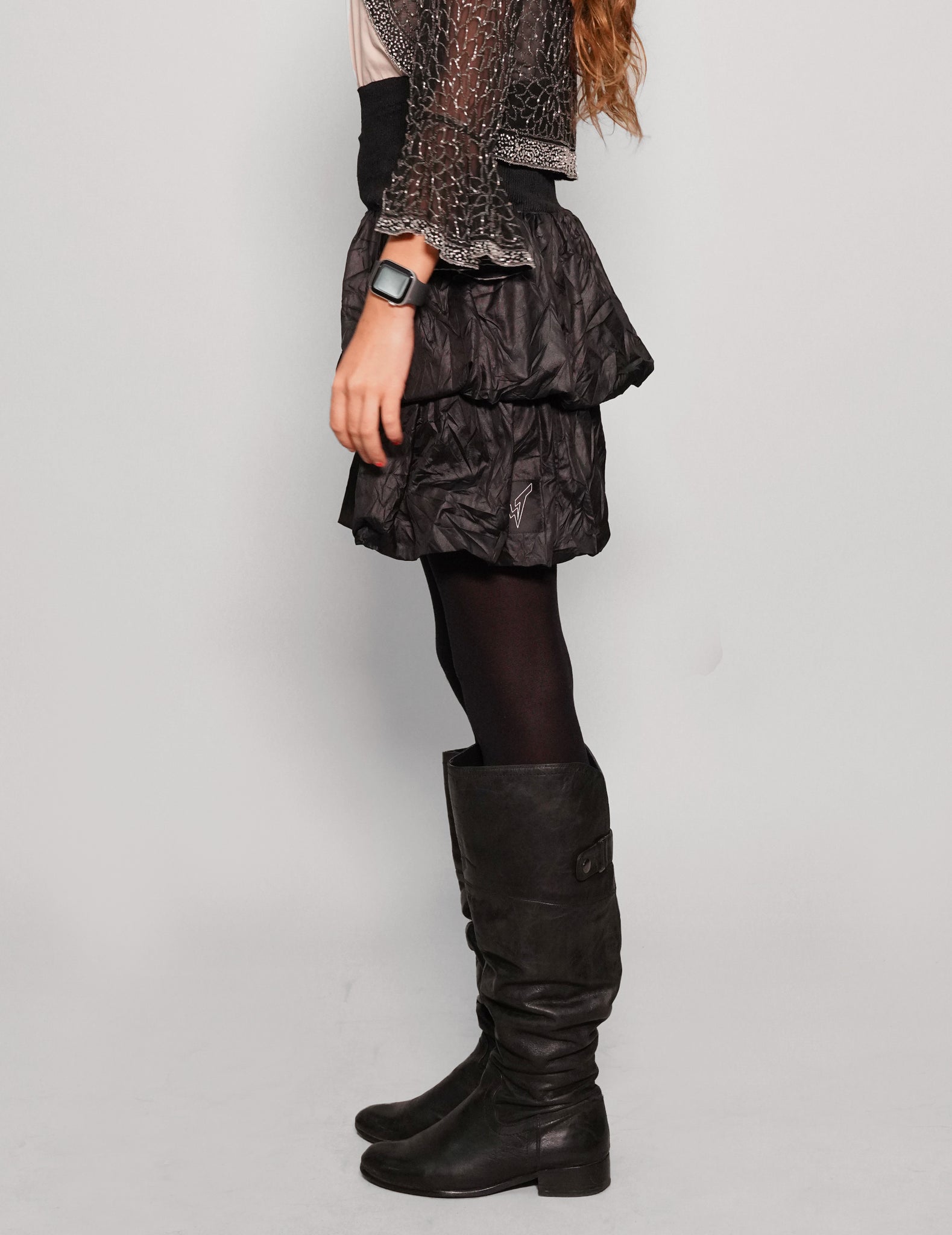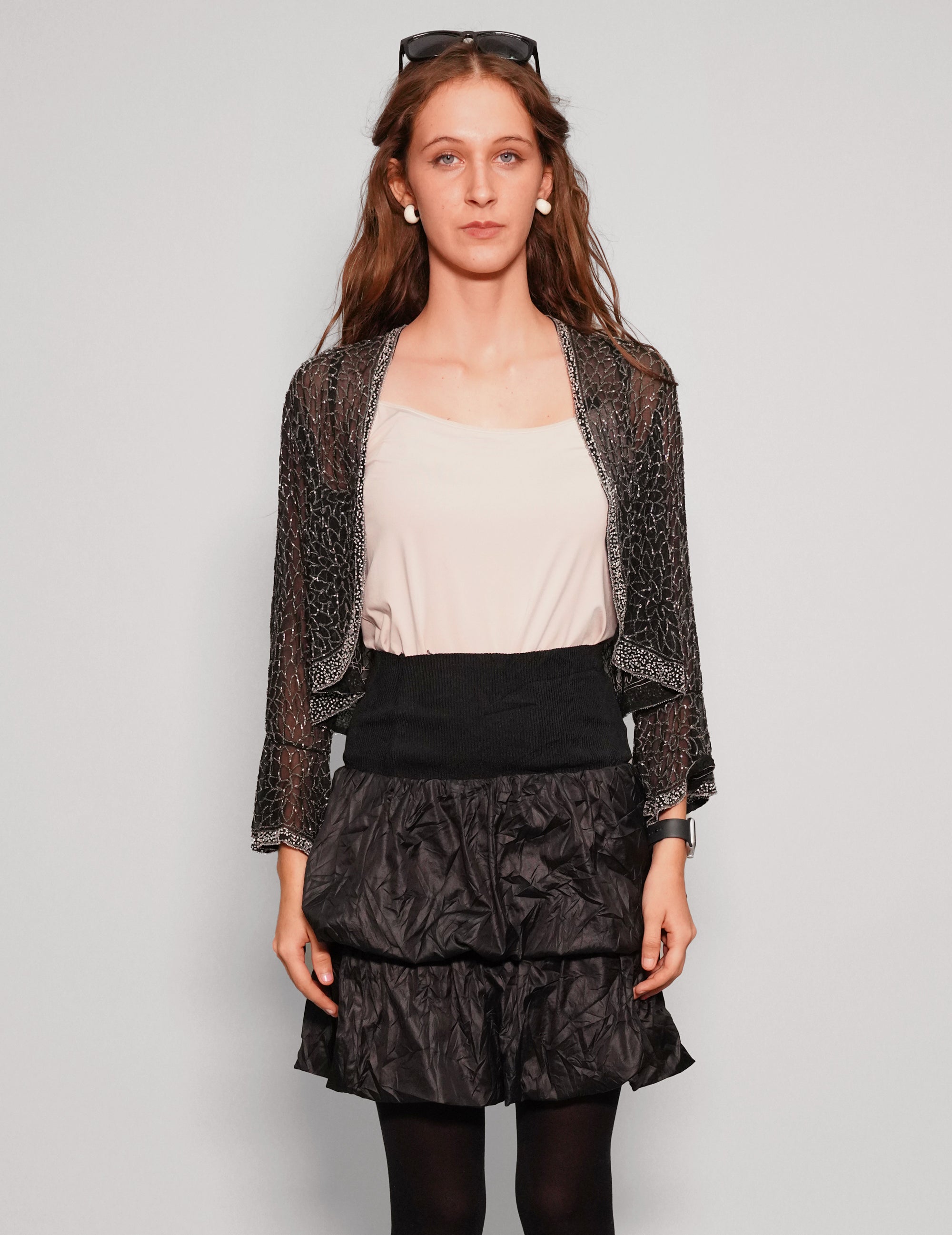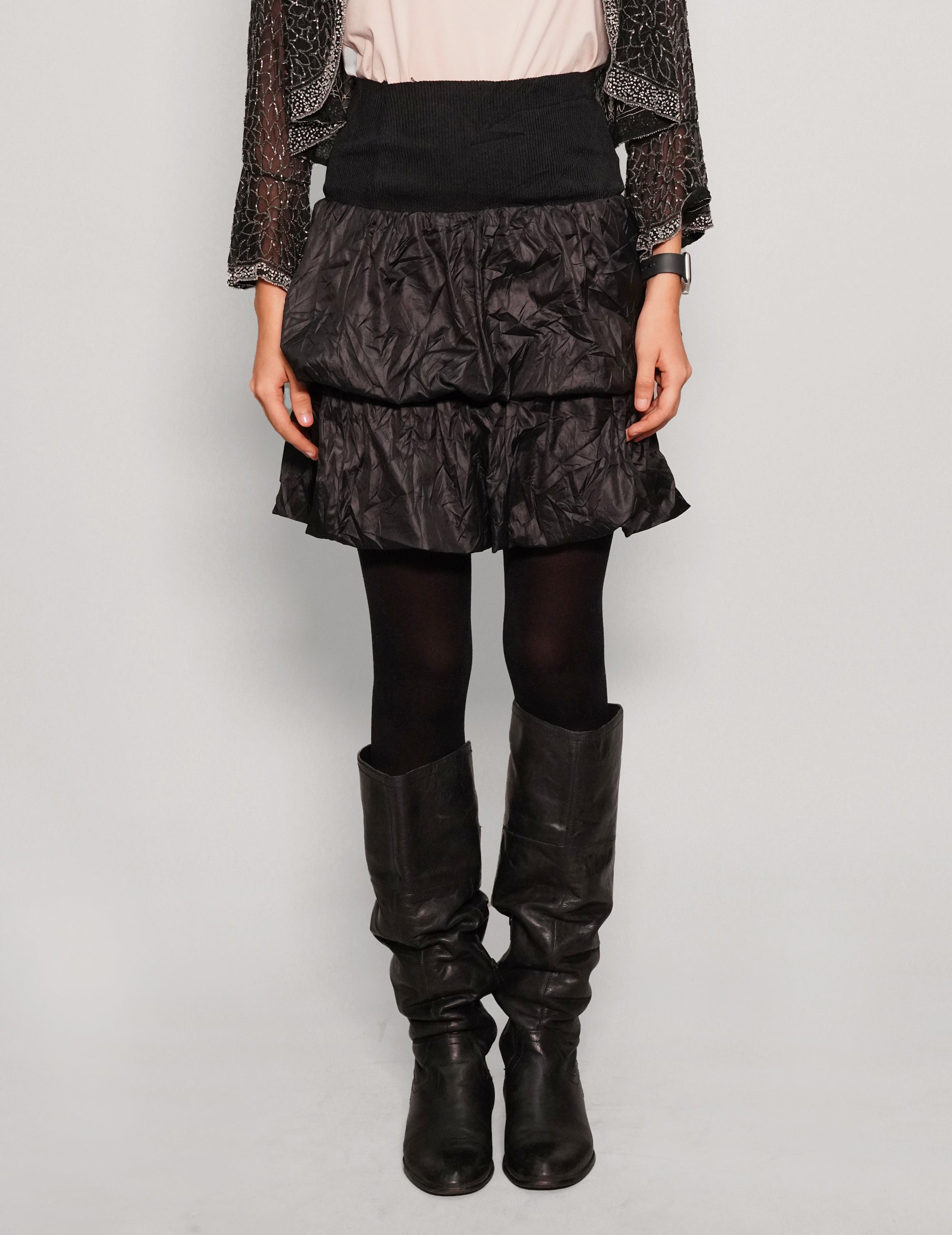 This Japanese designed Vintage black bubble skirt features a dual layer as well as a sleek high waist with elasticated material. Similar to Junya Watanabe.