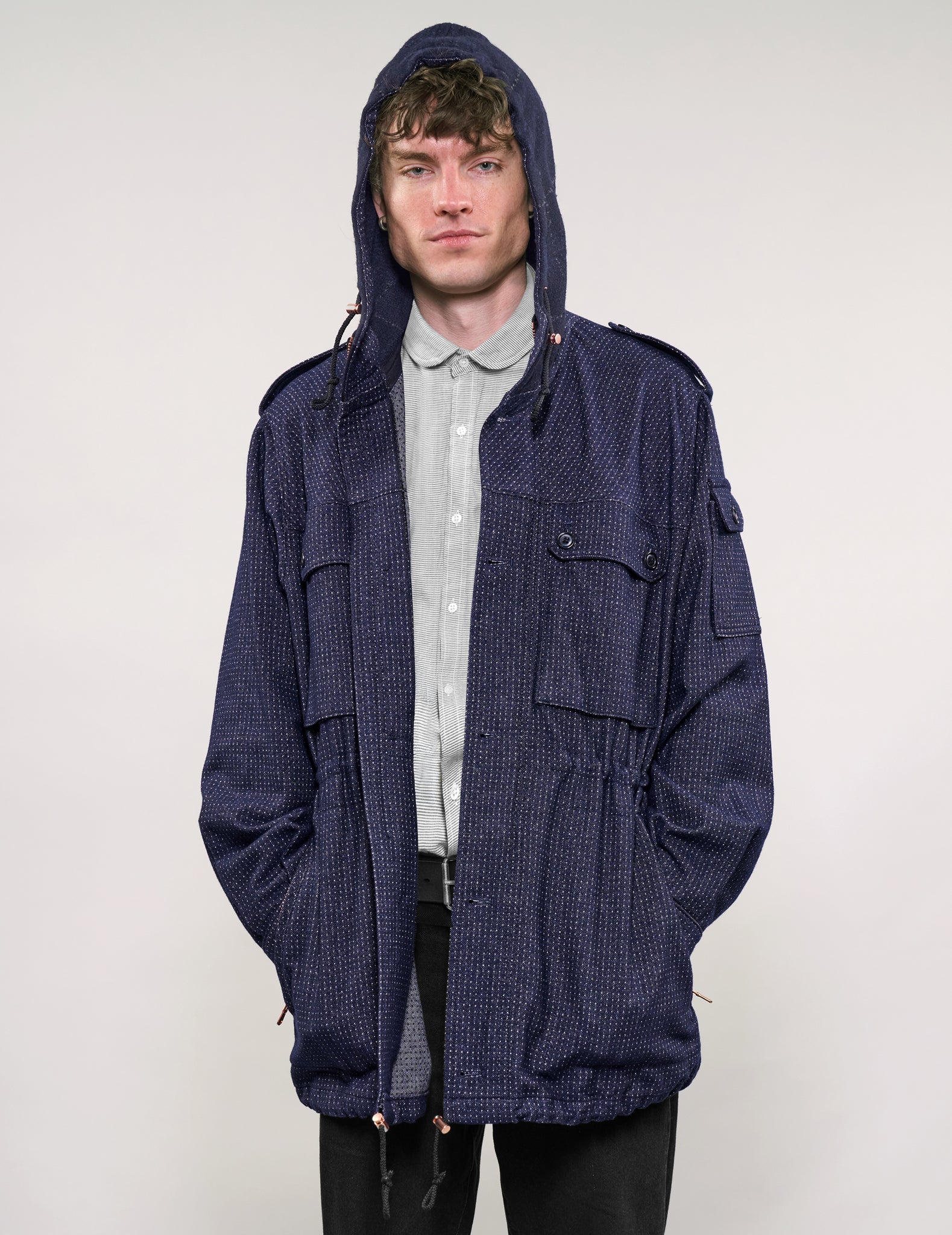The Parka gained prominence in the 1950’s and now Immortal have created their take on the iconic style. Introducing the Limited Edition Peter Parka. Made using premium fabrics from one of the finest artisanal Italian fabric mills. This zip through piece is unlined with bound seams. Epaulettes adorn the shoulders. Both the waist and hem are draw corded with spring loaded copper toggles.