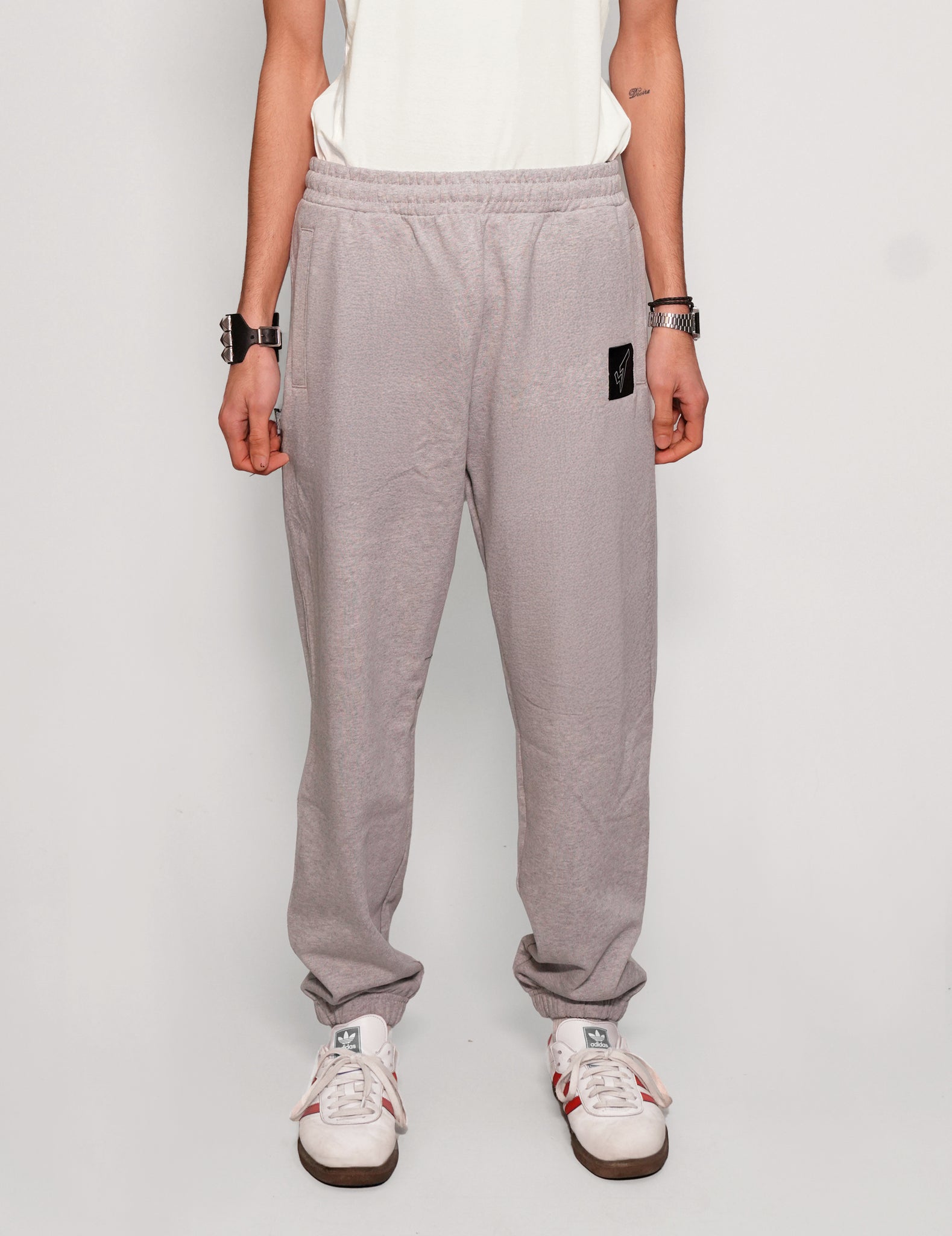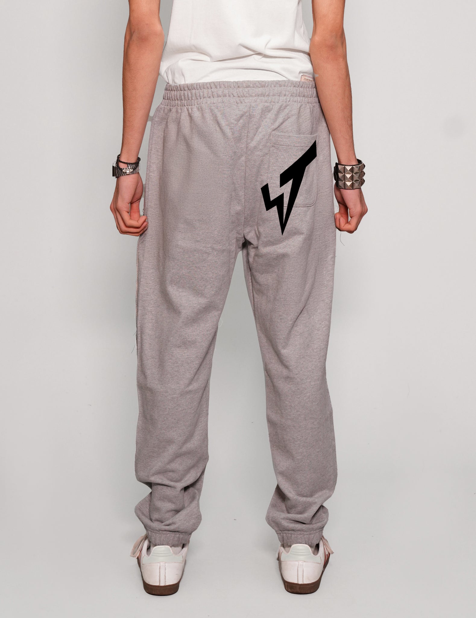 Grey jogger pants made from 100% GOTS certified organic cotton jersey, sourced from the most sustainable accredited production company, Features signature ST logo on the back.
