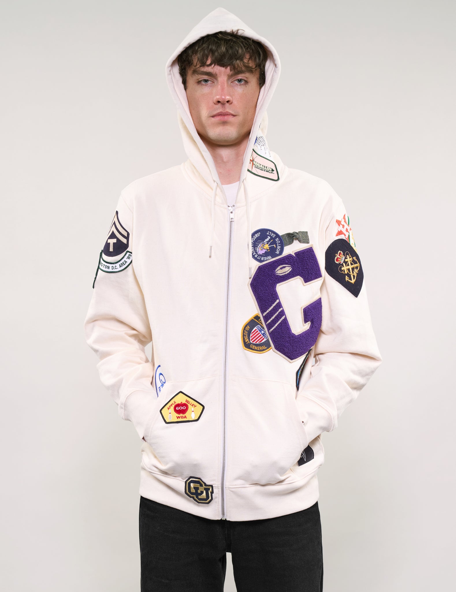 LIMITED EDITION Patched Zip Hoodie in Ecru