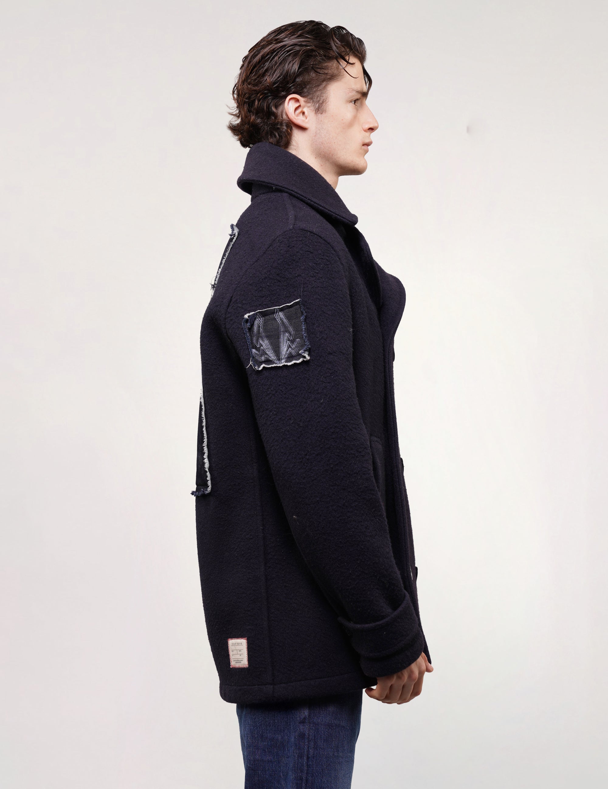 Double breasted woollen navy jacket, featuring a custom screen prints of our favourite Rock n Roll icon .These jackets are brand new, 90's deadstock vintage pieces.