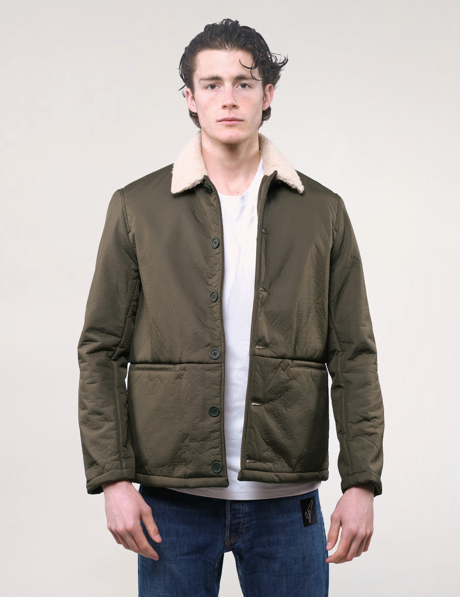 Vintage, fur collar work shirt, jacket from top class British designer Kestin Hare - bonded nylon and fur trim. Hand crafted in London from exclusive Italian fabric this is a stunning classic menswear winner.