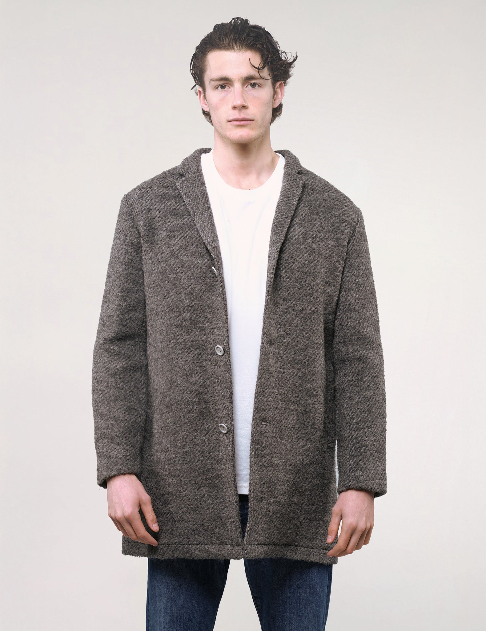 Stunning 2010 deadstock find from Kestin Hare, handcrafted in London from exclusive Italian recycled woollen mixed tweed and lined with beautiful cotton inside and striped sleeve lining.