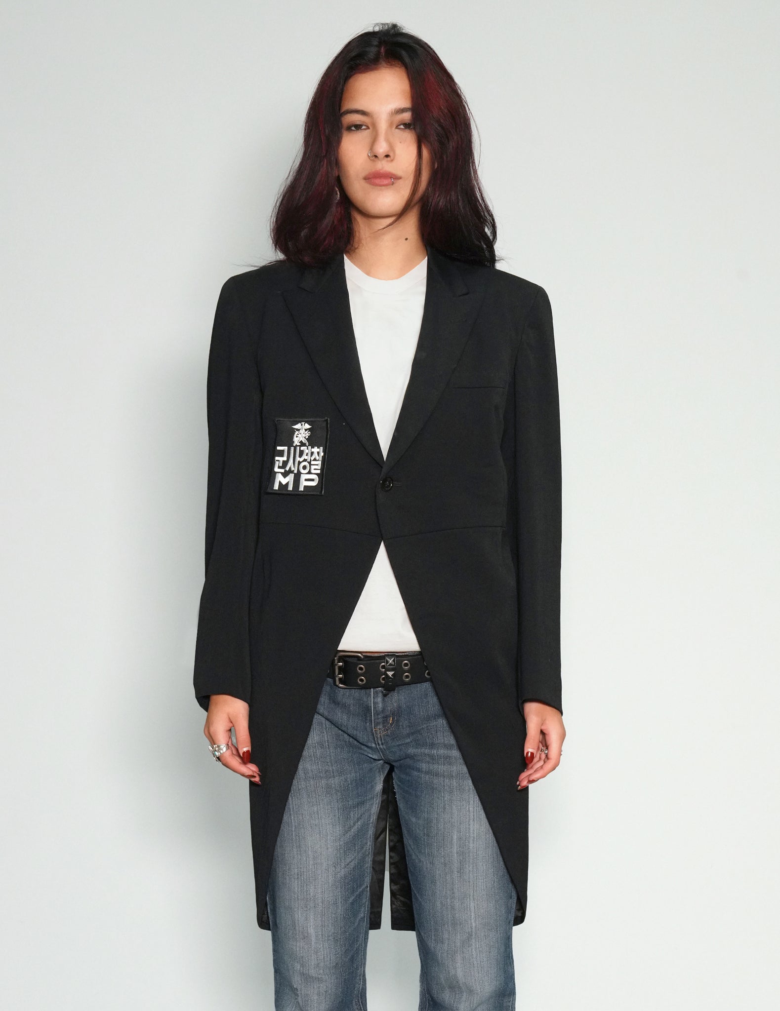 Vintage Edwardian tailcoat, customised with South Korean army patch. Circa 1920's. 100% Wool. Features inside breast pocket and 3-button fastening front.