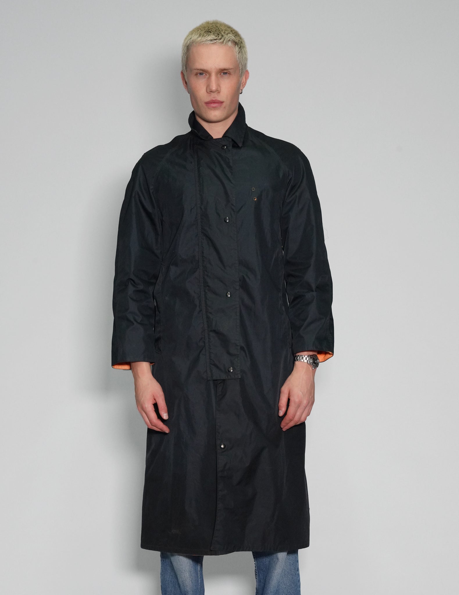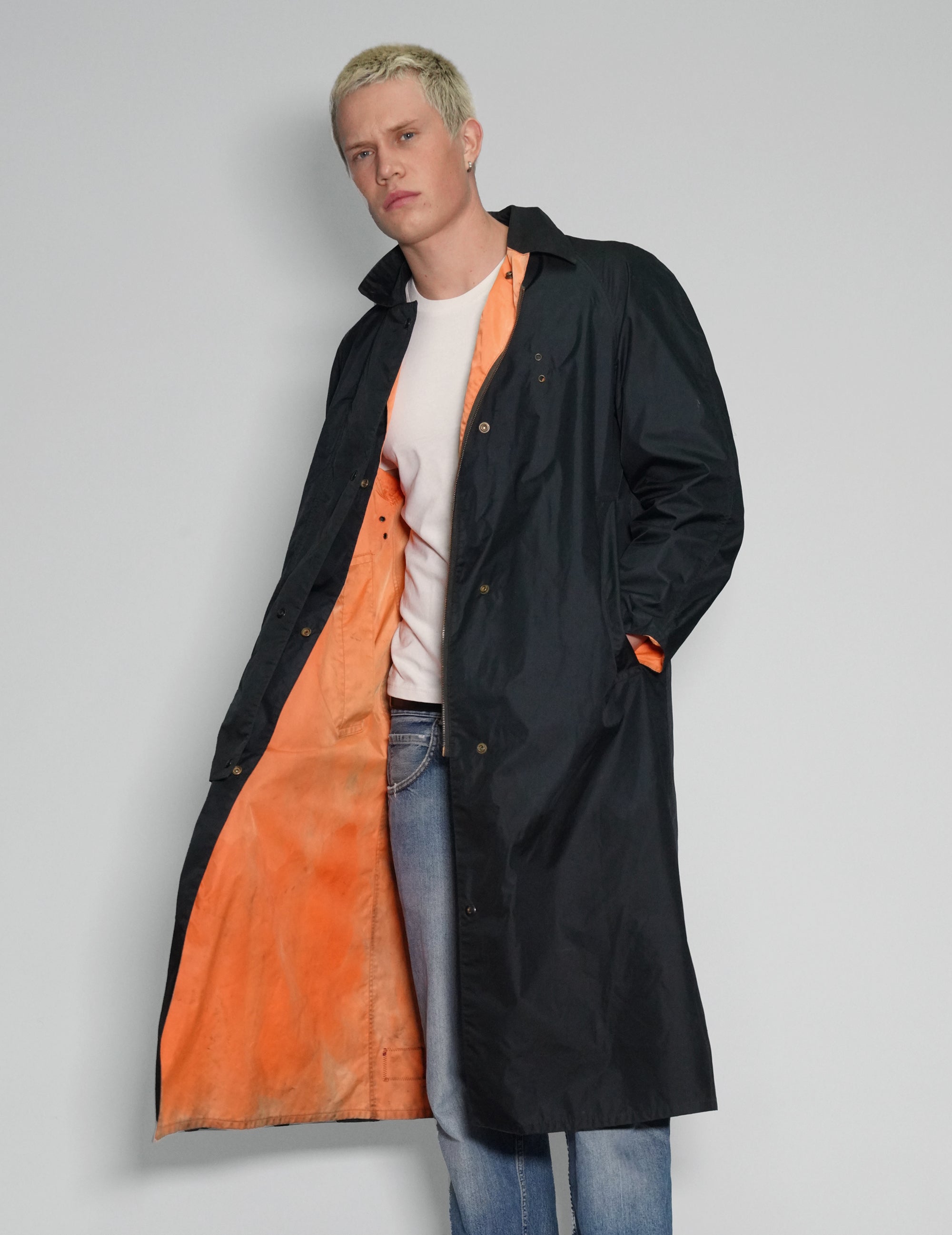 An original vintage Macintosh, constructed in the same way as MA-1 bomber jackets. Reversible, the coat has the inner orange lining for easier indentification by downed pilots. Popper fastening front and side slit pockets that work either way the coat is worn.