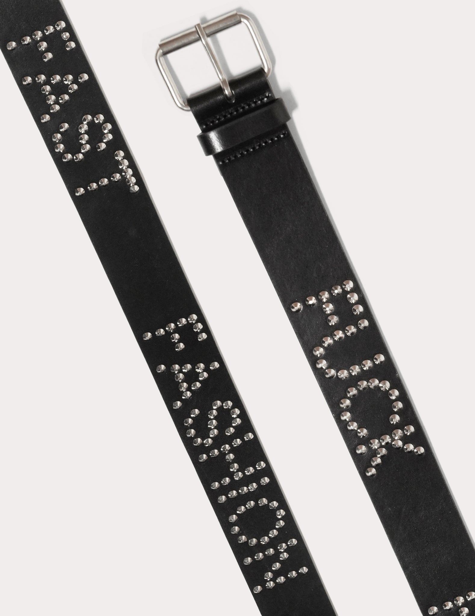 A Stuart Trevor original piece, these beautiful leather studded belts are made from the finest British saddle leather, a by-product of the meat industry. Each belt is lovingly handcrafted in East London. This rock and roll belt is emblazoned with 'F*ck Fast Fashion'