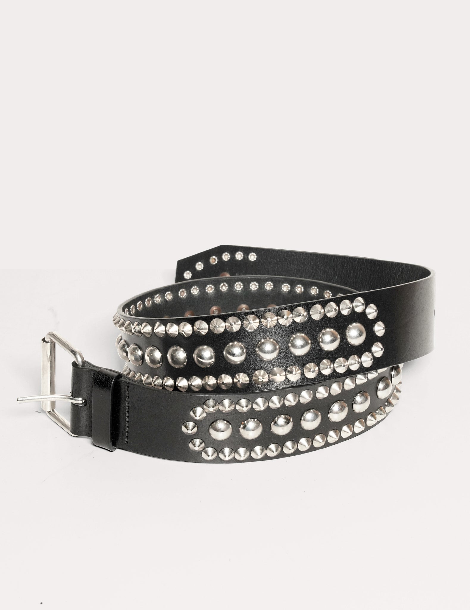 A Stuart Trevor original piece, these beautiful leather studded belts are made from the finest British saddle leather, sourced from a dead stock supply. Each belt is lovingly handcrafted in East London. This rock and roll belt is emblazoned with a pattern of huge dome rounded and conical studs.