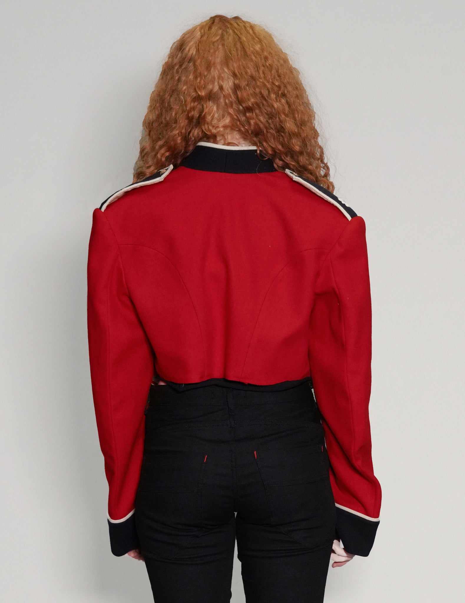 Original vintage Scots Guards tunic in Scarlet, cropped by Stuart himself on stage during London Fashion Week. 100% Wool, with metal buttons. Circa 1970's. Ideal for Halloween, or for a bit of Military flair on an outfit.