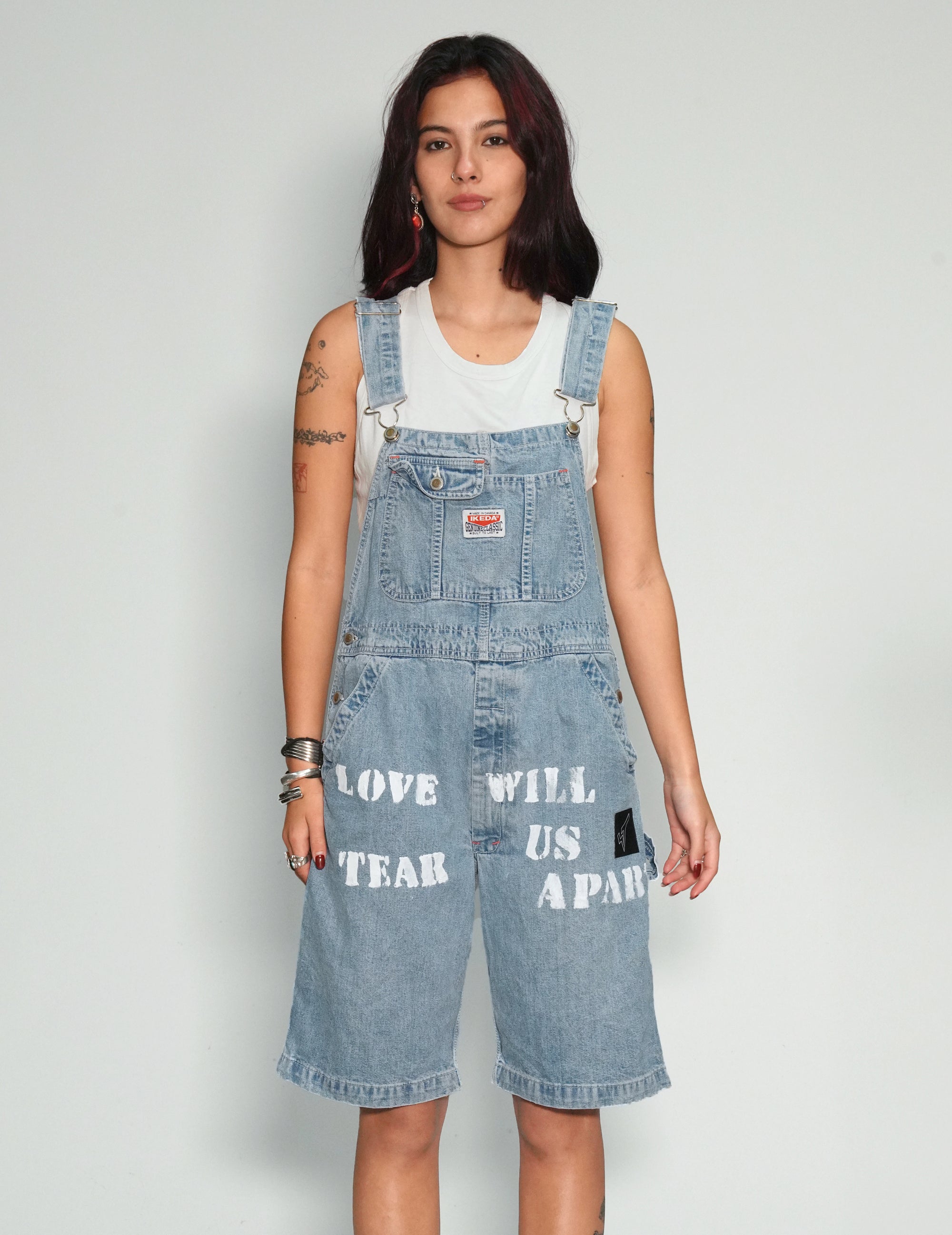 'Love Will Tear Us Apart' Dungaree Shorts