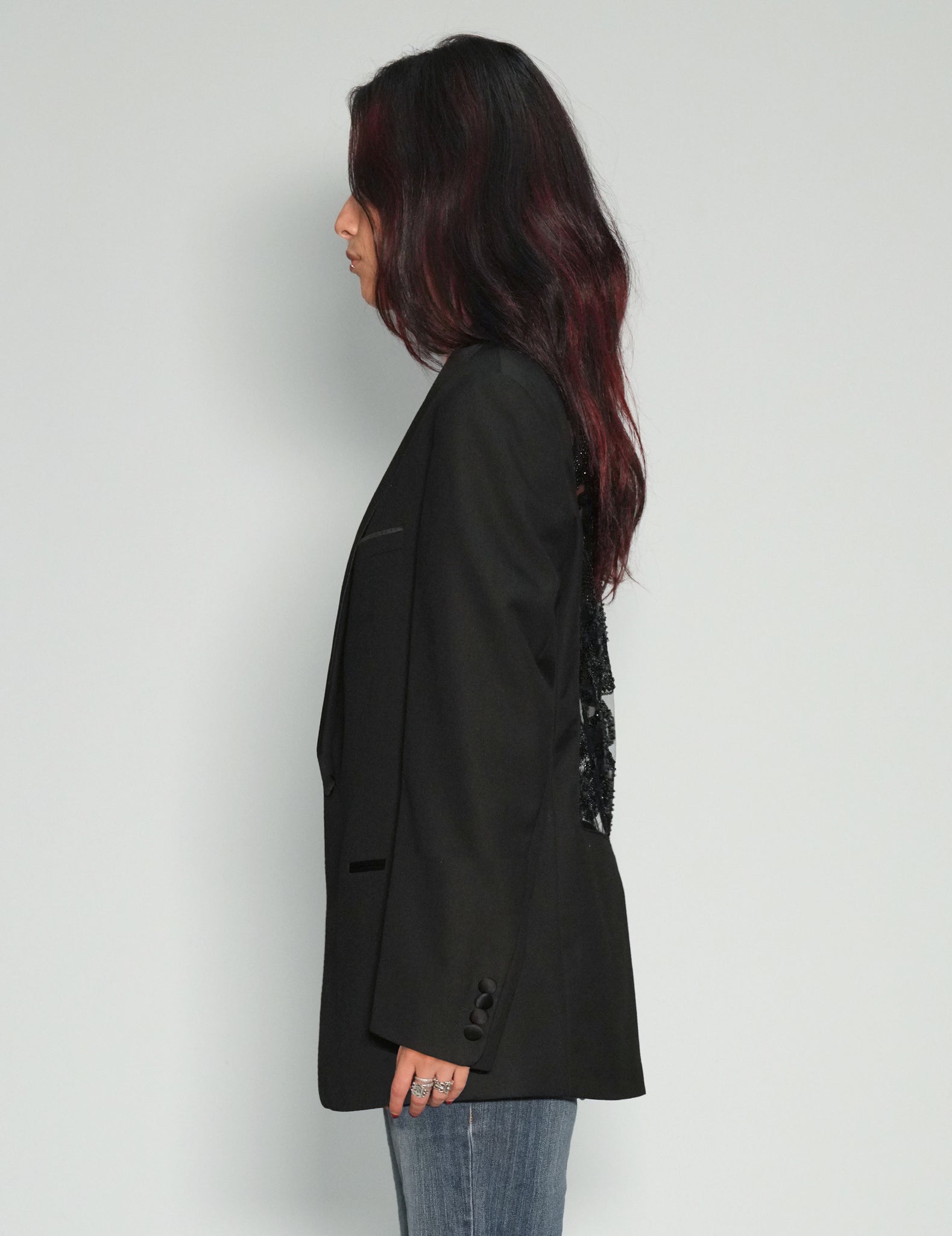 Vintage Tuxedo, customised with ST's iconic, sheere sequin party back. Flap hip pockets, inside breast pockets and button fastening front.