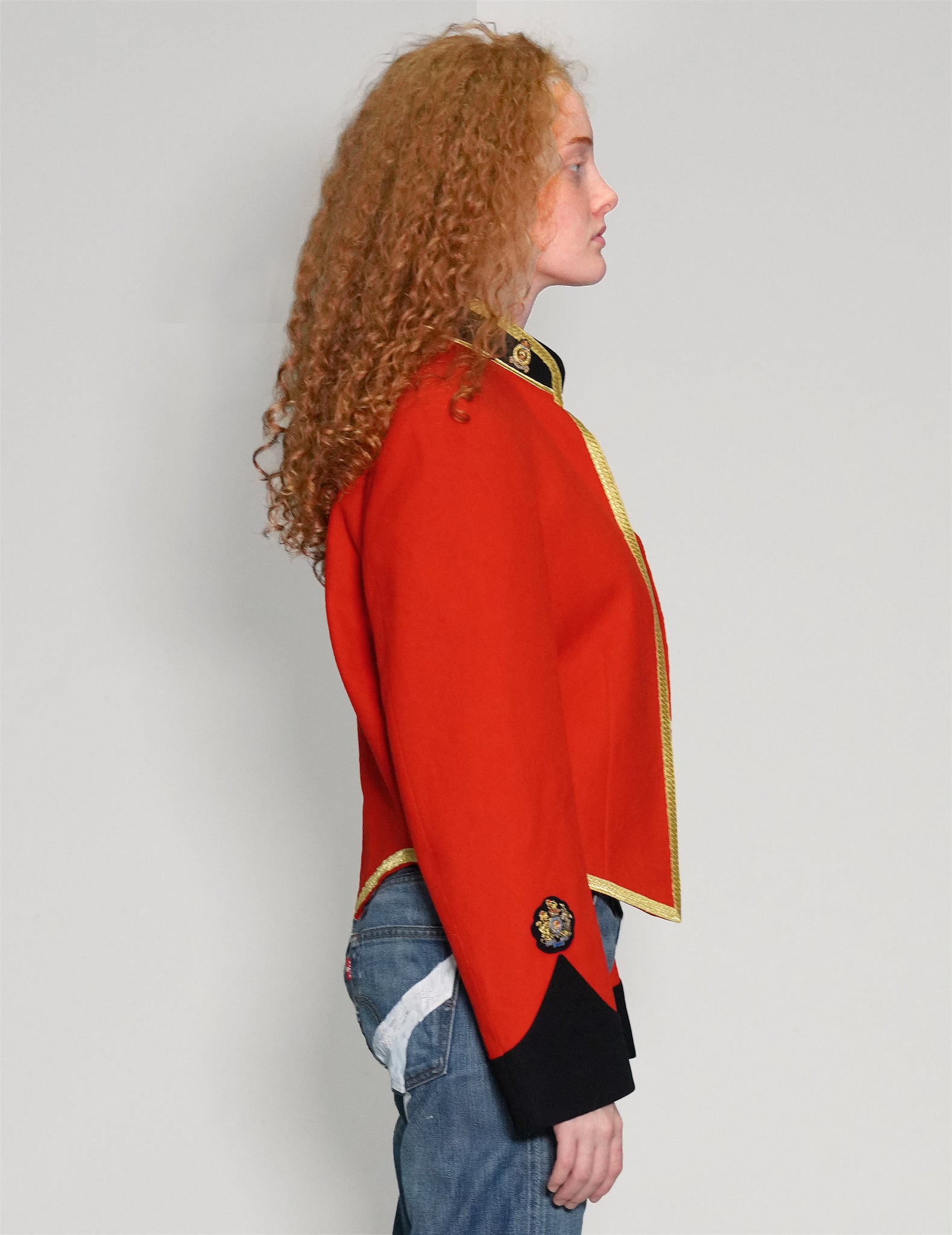 Vintage Adjutant General's Corps mess dress, normally worn on formal occasions such as state banquets, or weddings. 100% Wool in scarlet colourway, with accompanying Queen's Jubilee medals on the left breast. Perfect to add a bit of Military flair to an outfit.