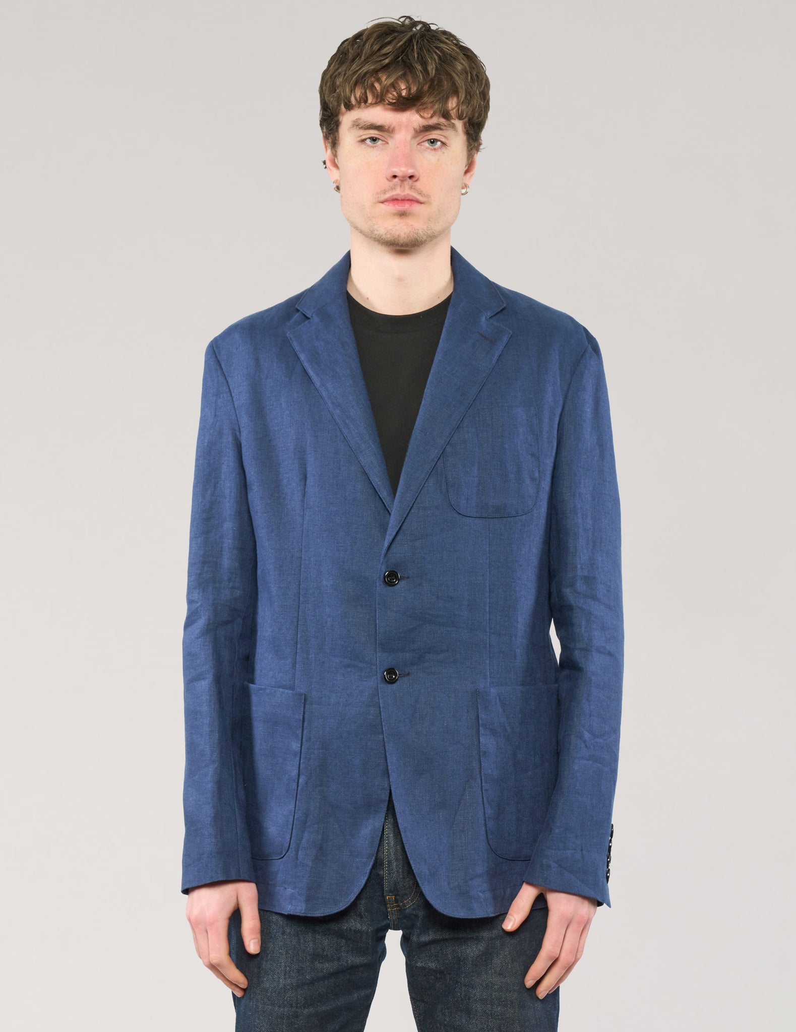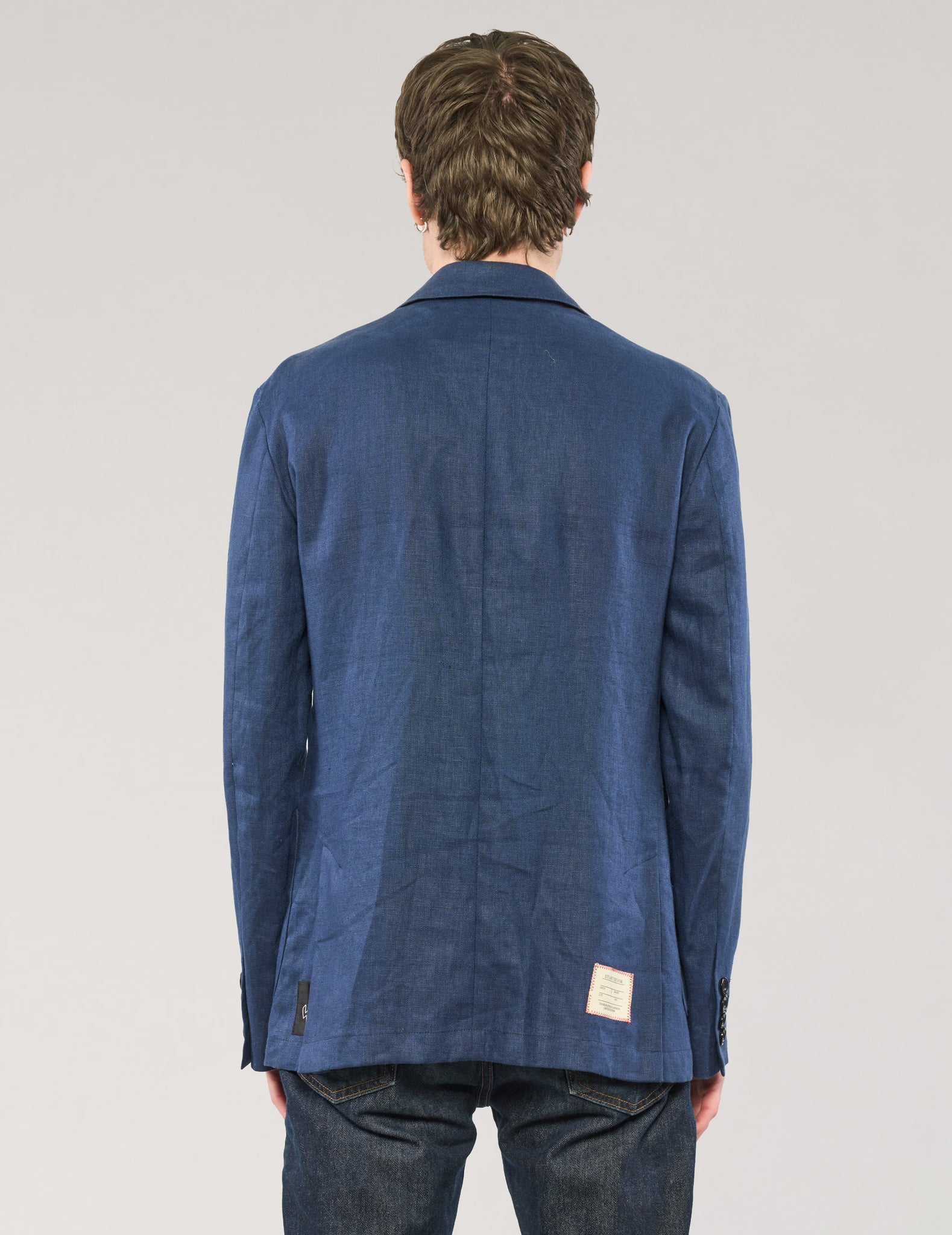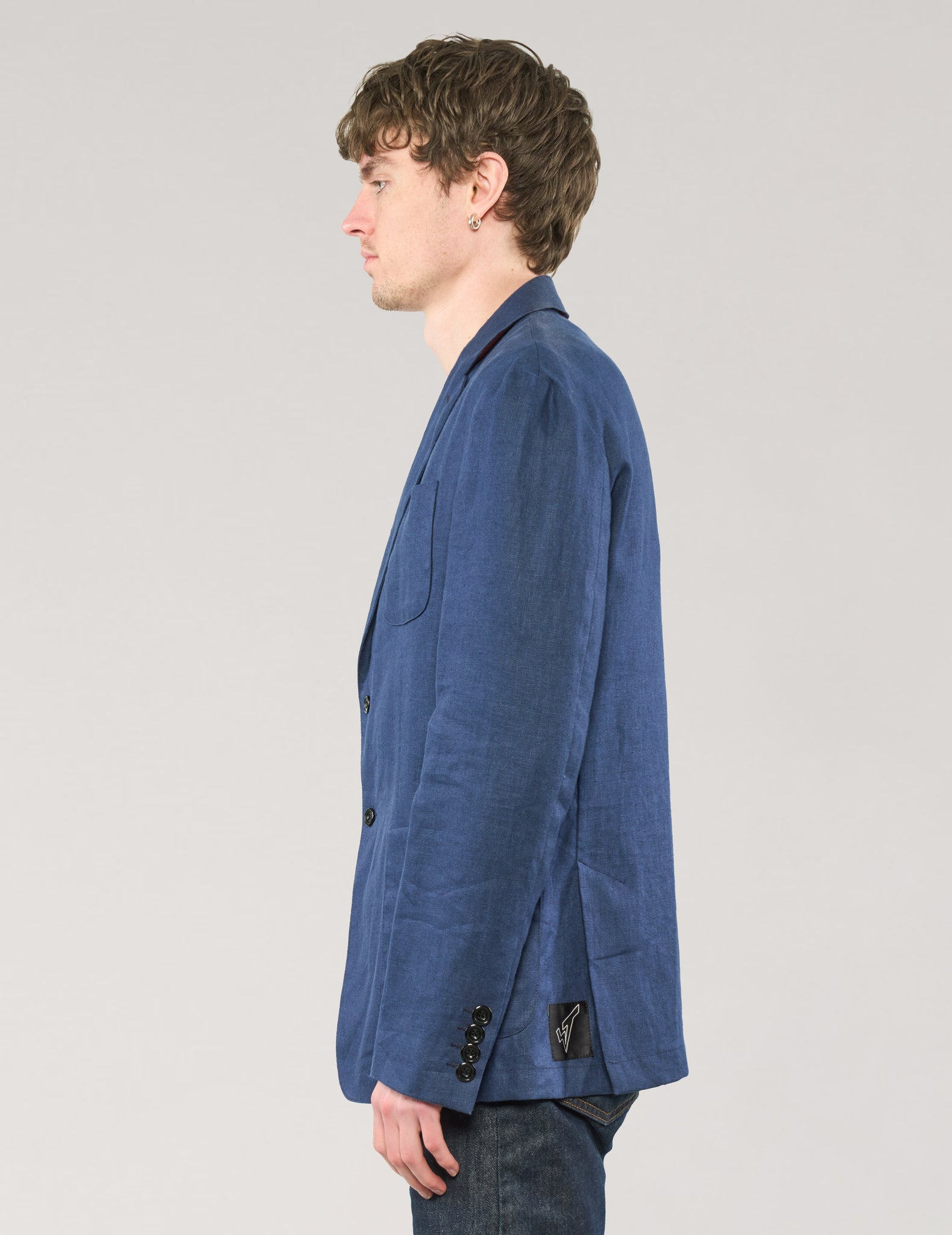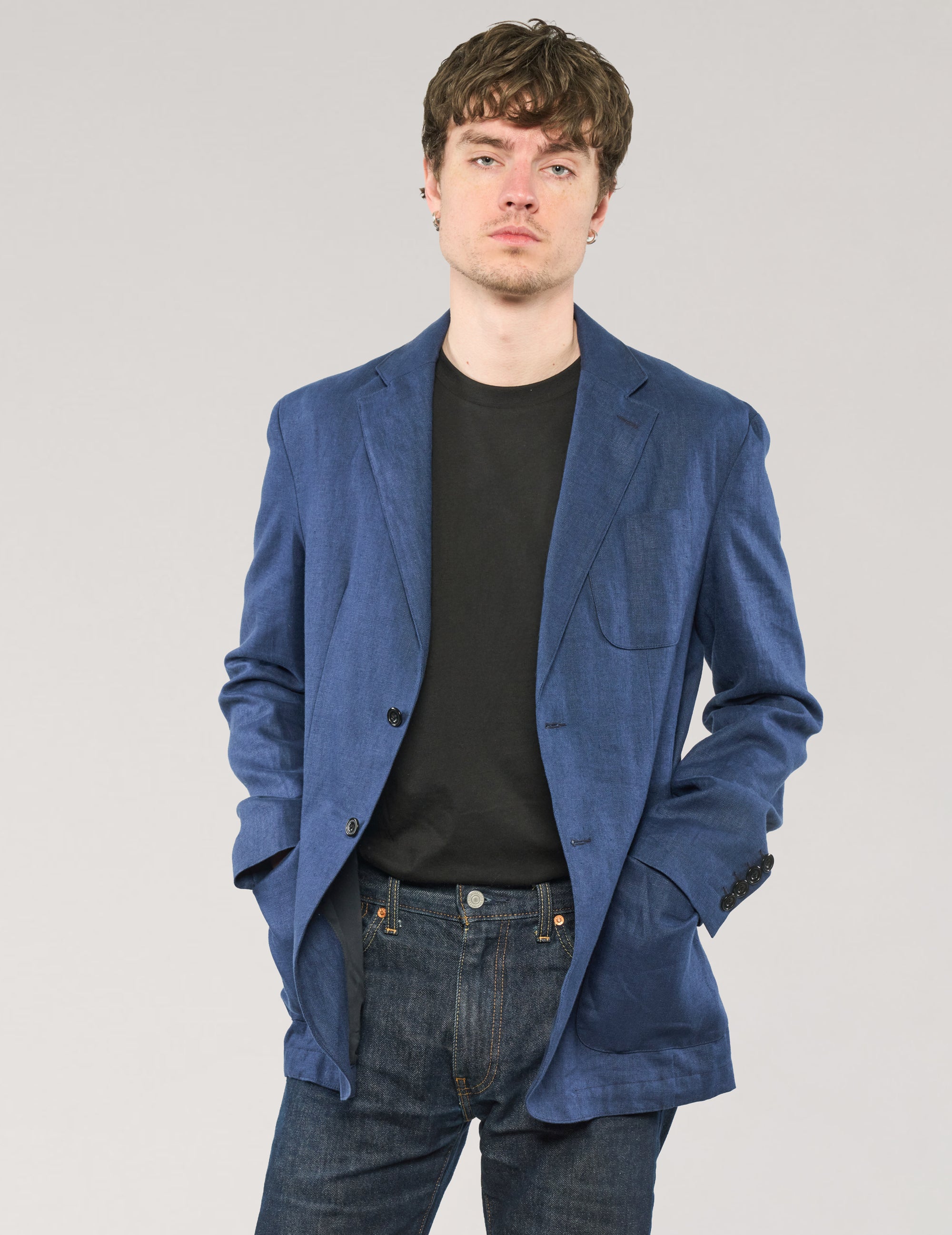 Stuart Trevor Deadstock Lightweight Linen blazer in Navy Blue, 100% Linen, unlined. Perfect for looking smart in sweltering summer weather, this blazer features breast patch pockets, patch hip pockets and inside breast pockets and ticket pocket.