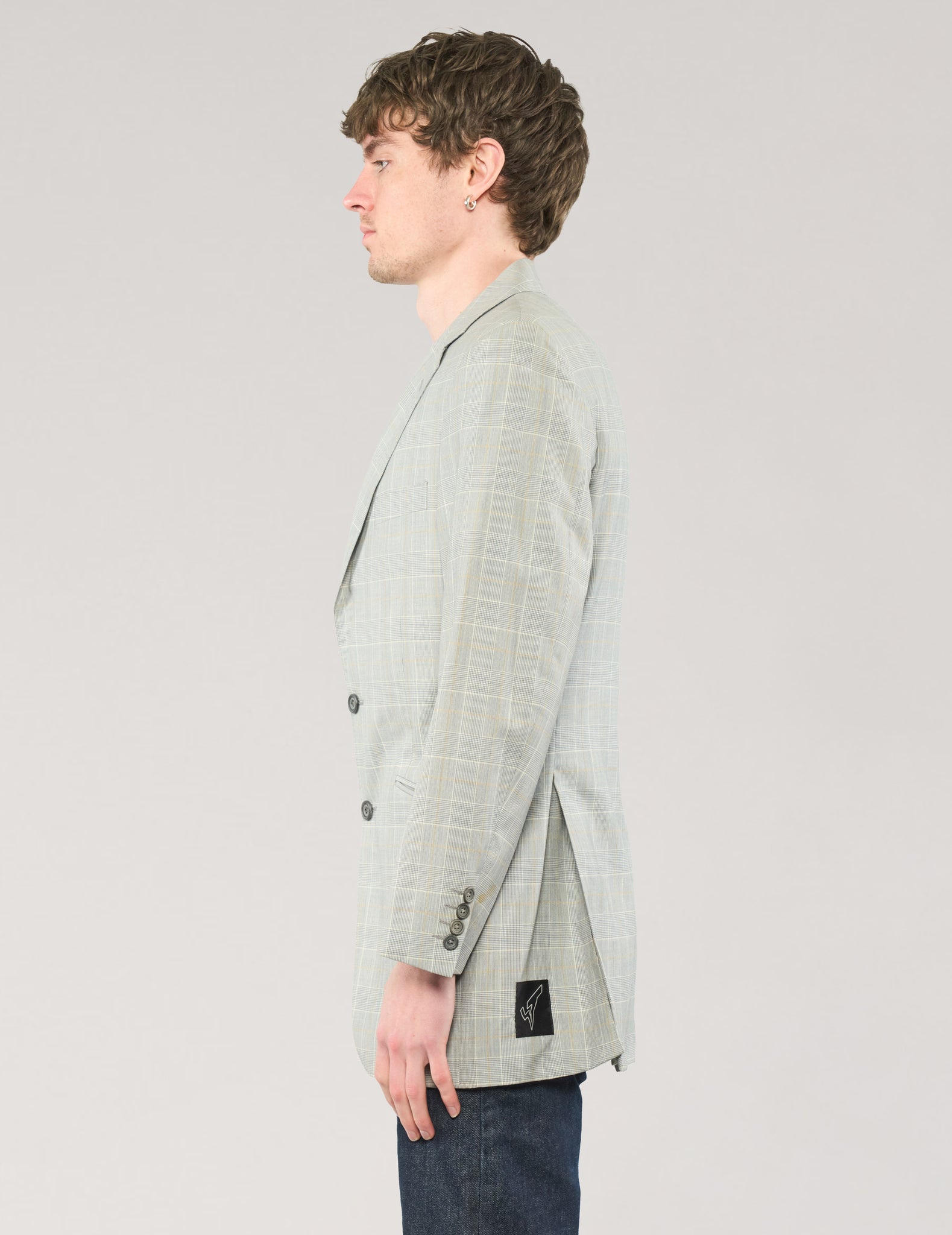Vintage Richard James of Savile Row suit jacket, in a Prince of Wales check. 99% Wool and 1% Cashmere, with Cupro lining. Features two button closure, slanted flap pockets and inside pockets. A beautiful hand-tailored piece sure to stand out.