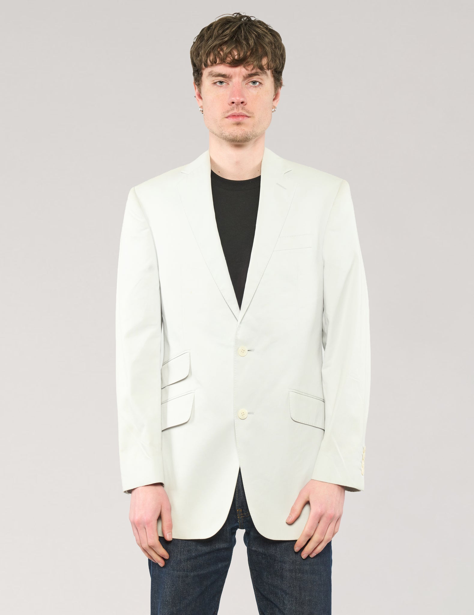 Vintage Richard James of Savile Row suit jacket, in a light grey colourway. 100% Cotton with Cupro lining. Features Notch lapels, two button closure, slanted flap ticket and hip pockets and inside breast pockets. A beautiful hand-tailored piece sure to stand out.