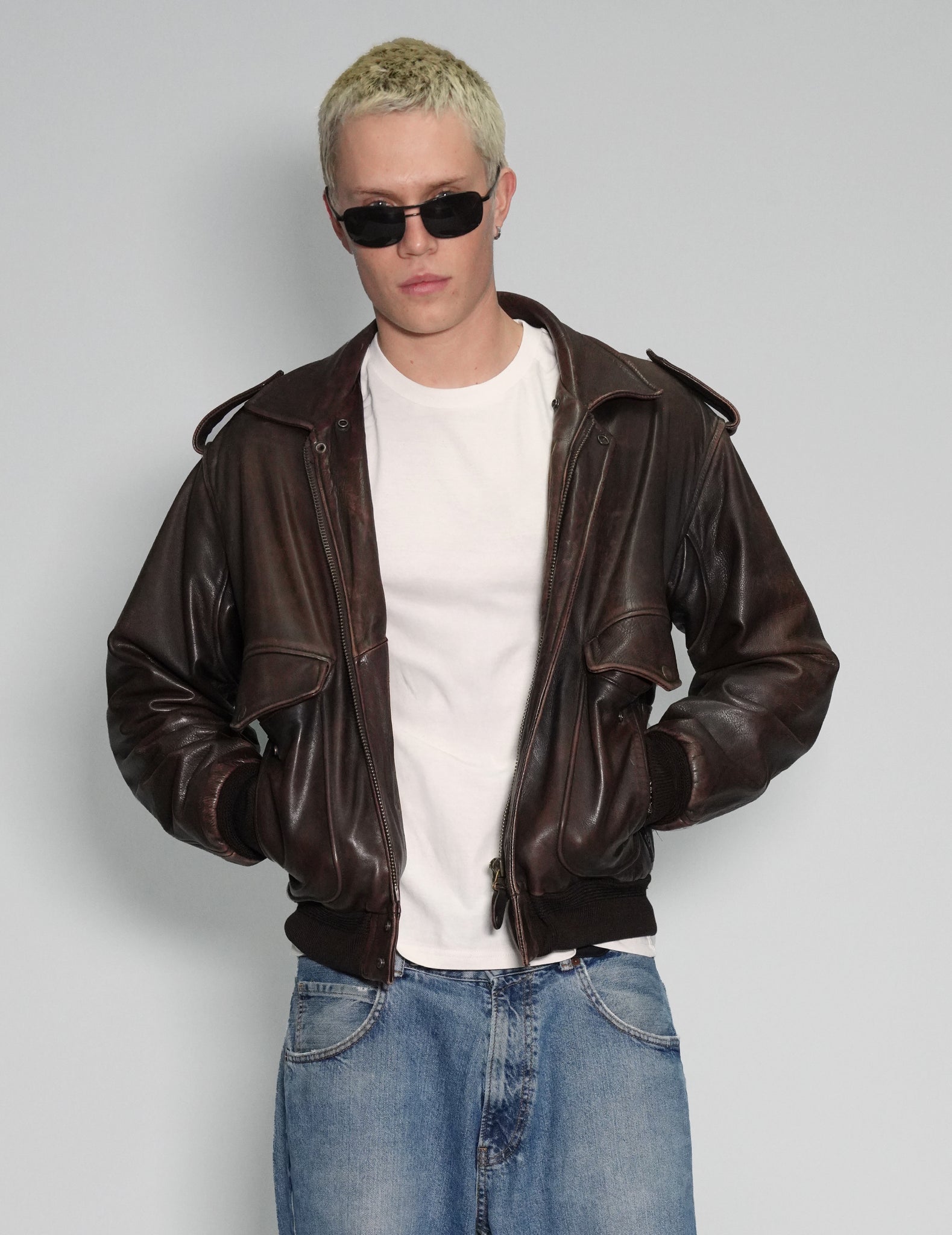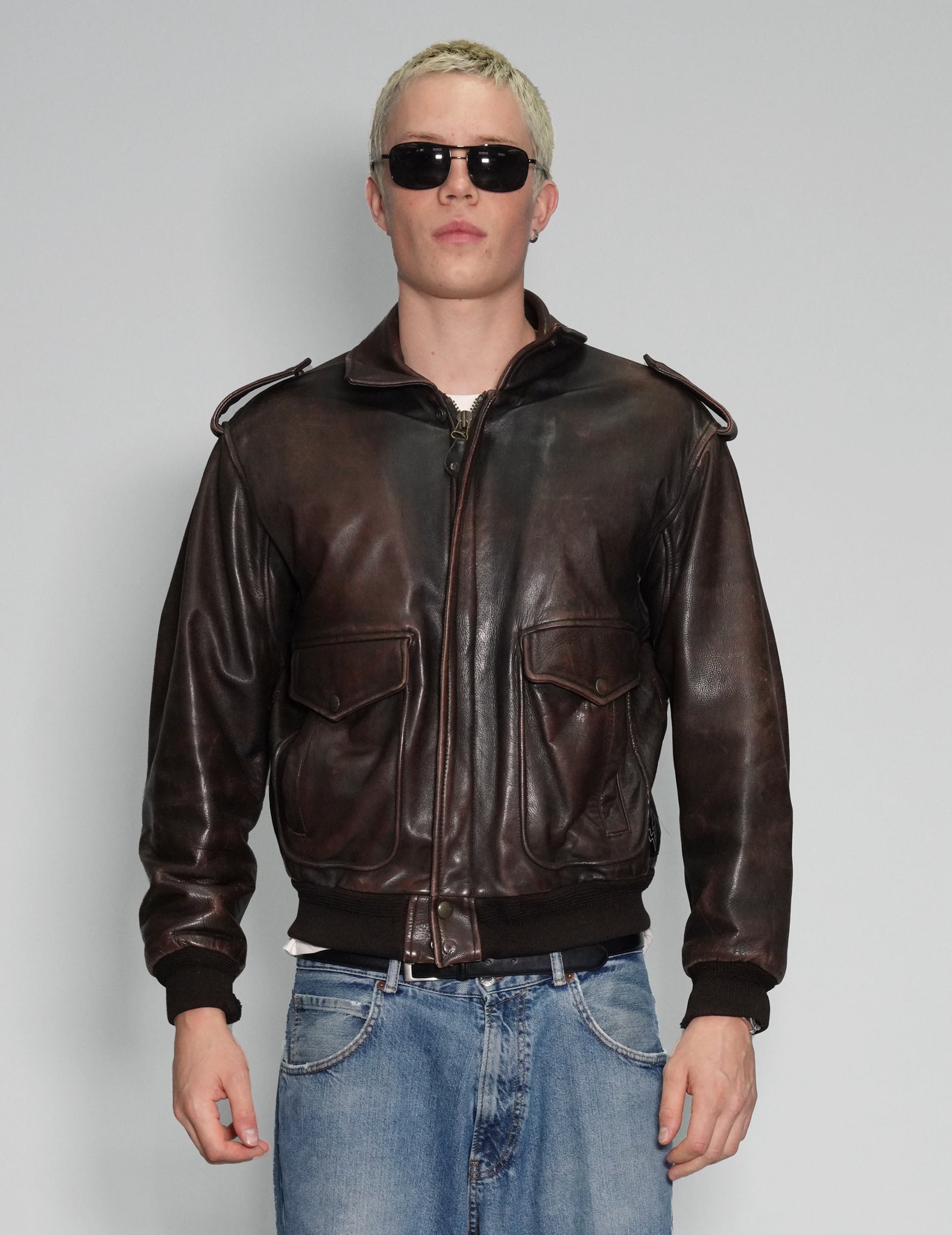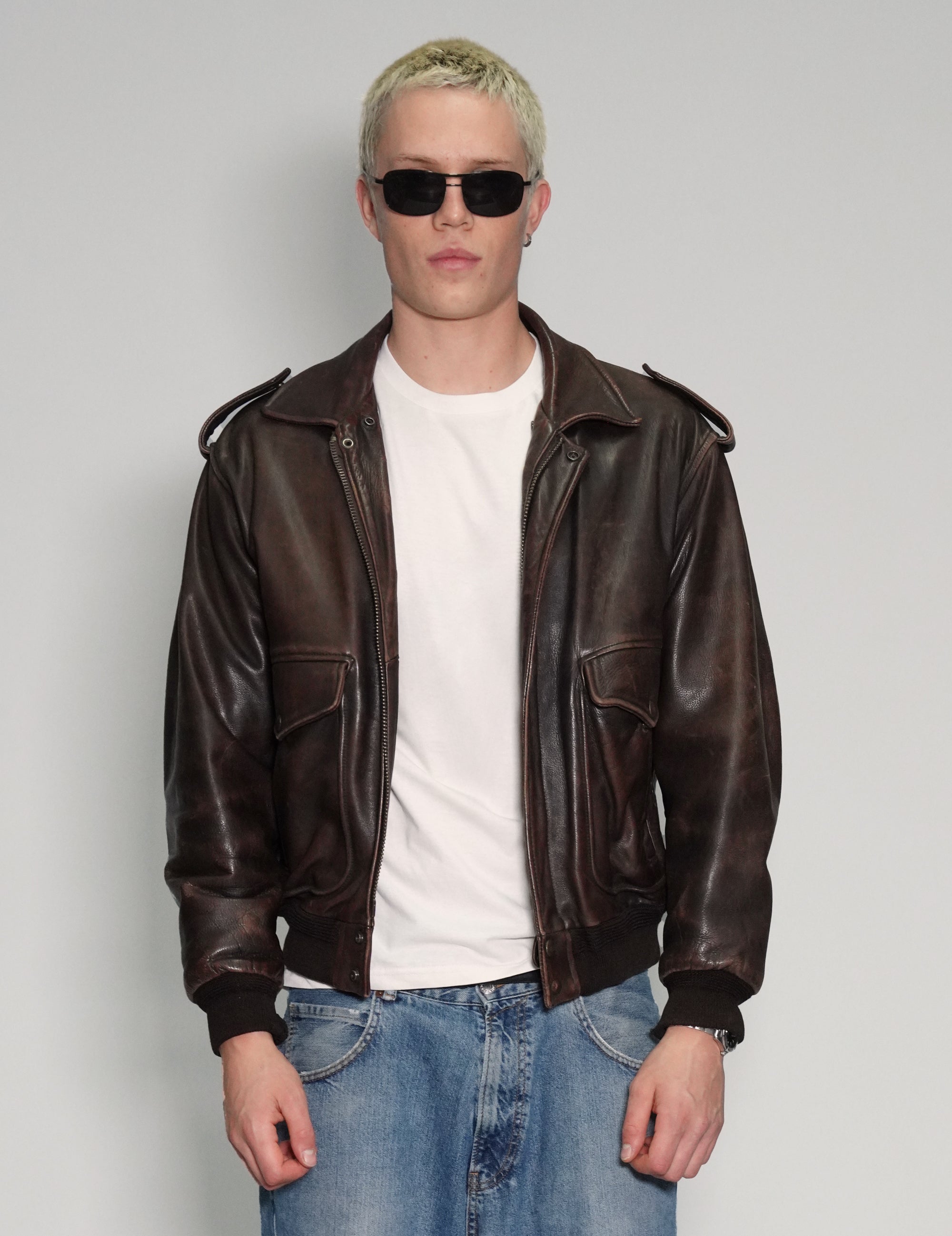 Vintage USAF-pattern bomber jacket, based on the A2 Bomber, created in WW2 for US Army Air Force pilots flying missions over Germany.