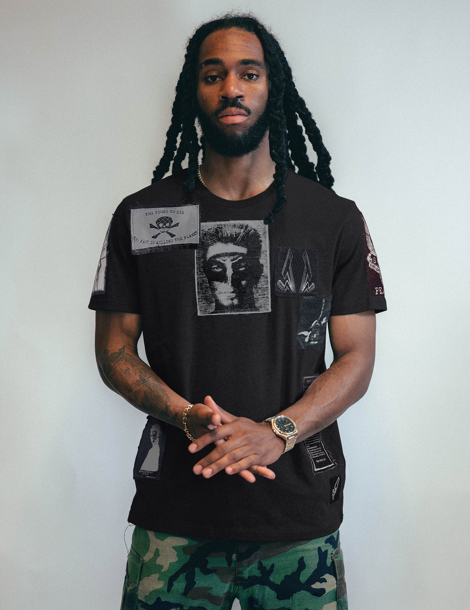 'Saint' Multipatch T-Shirt in Black
