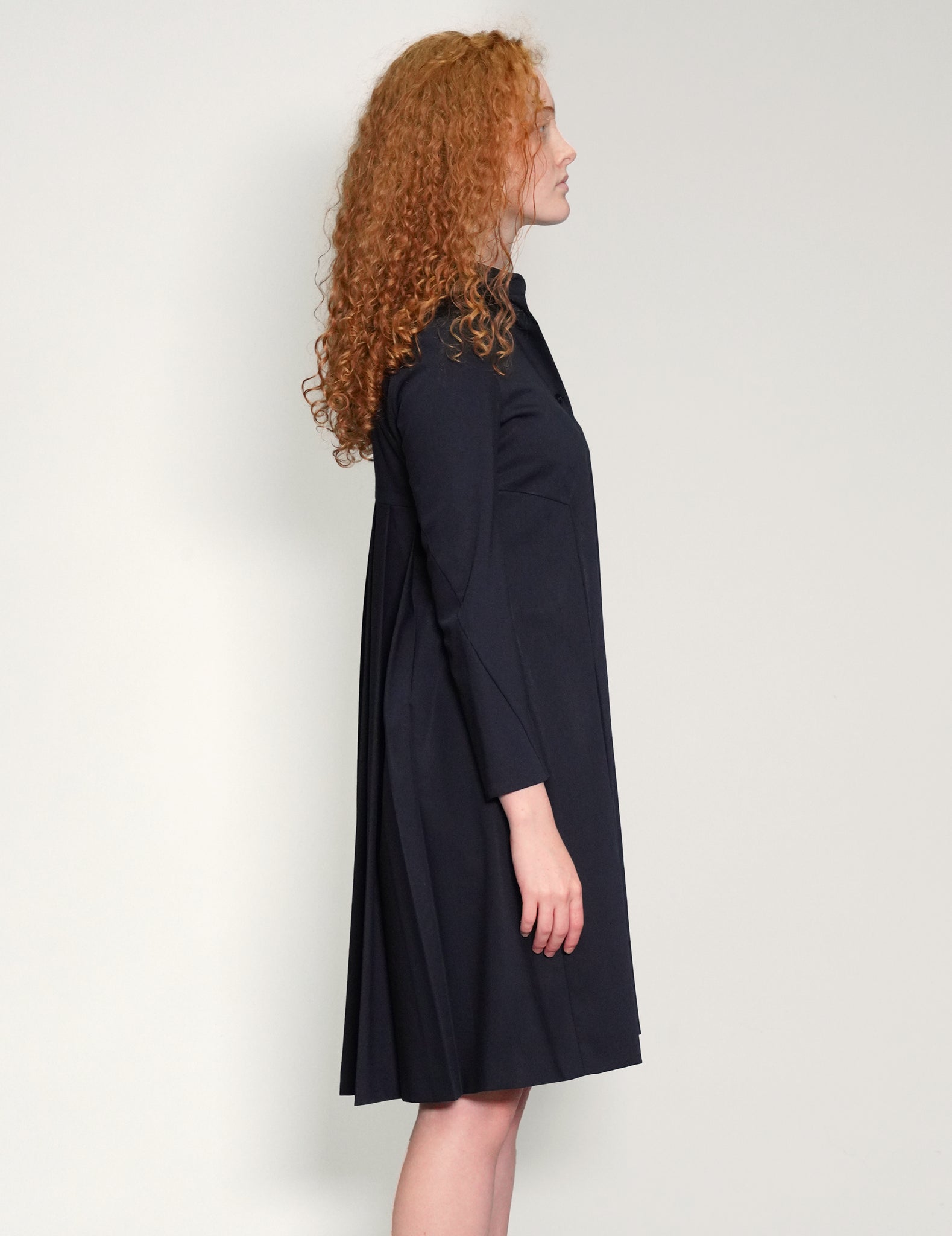 Made in Italy, this dead stock, vintag navy tailored shirt dress, designed by superstar Jill Sander exudes sophistication and timelessness. Features beautiful box pleats along the back. Finished with Stuart Trevor tag along the inner collar.