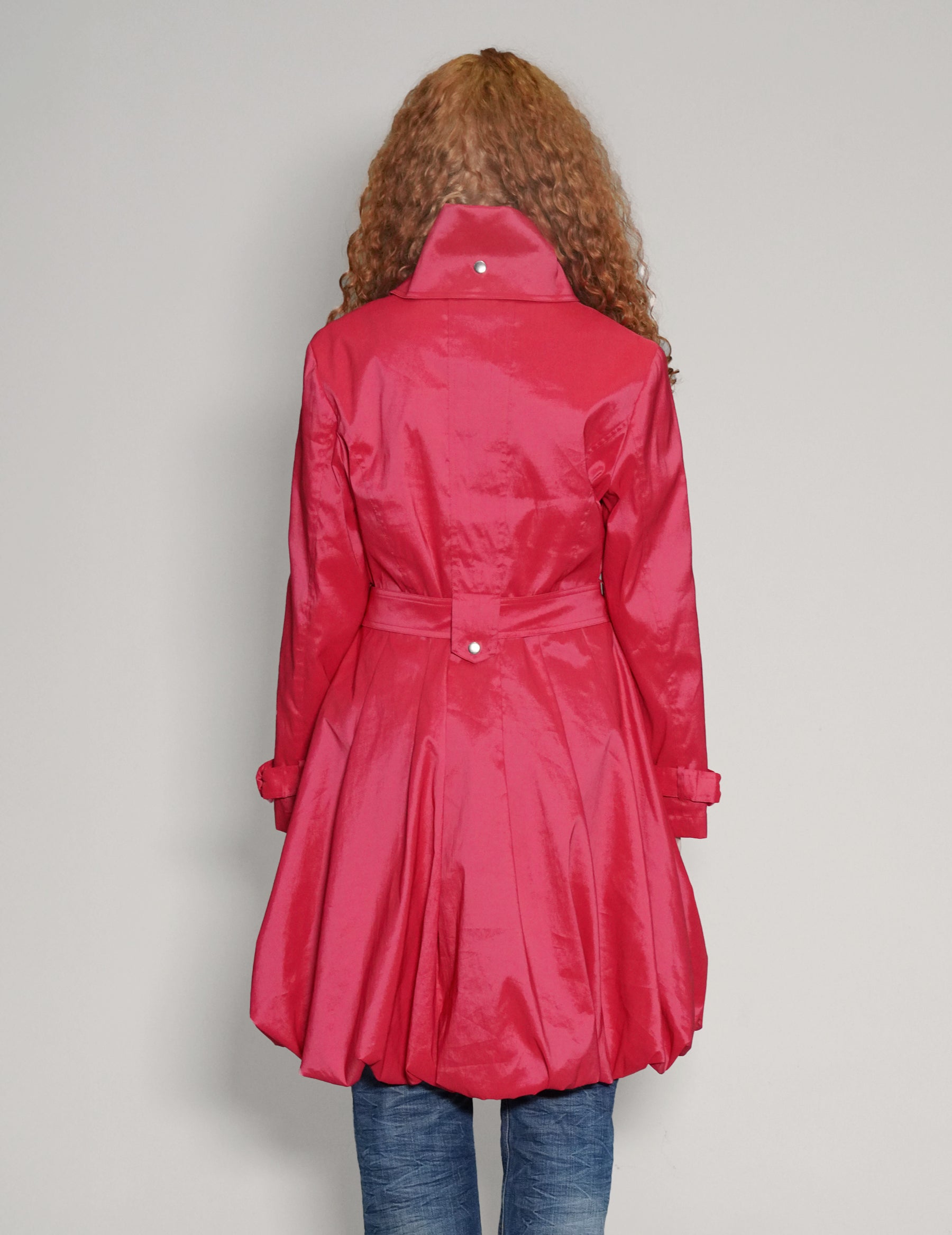 Samuel Dong overcoat, 48% Polyester 45% Nylon 7% Spandex. Incredible construction, with high popper fastened collar, adjustable waist belt and cuffs, large flap pockets and popper fastening front. Perfect for adding a pop of colour to Autumn outfits.