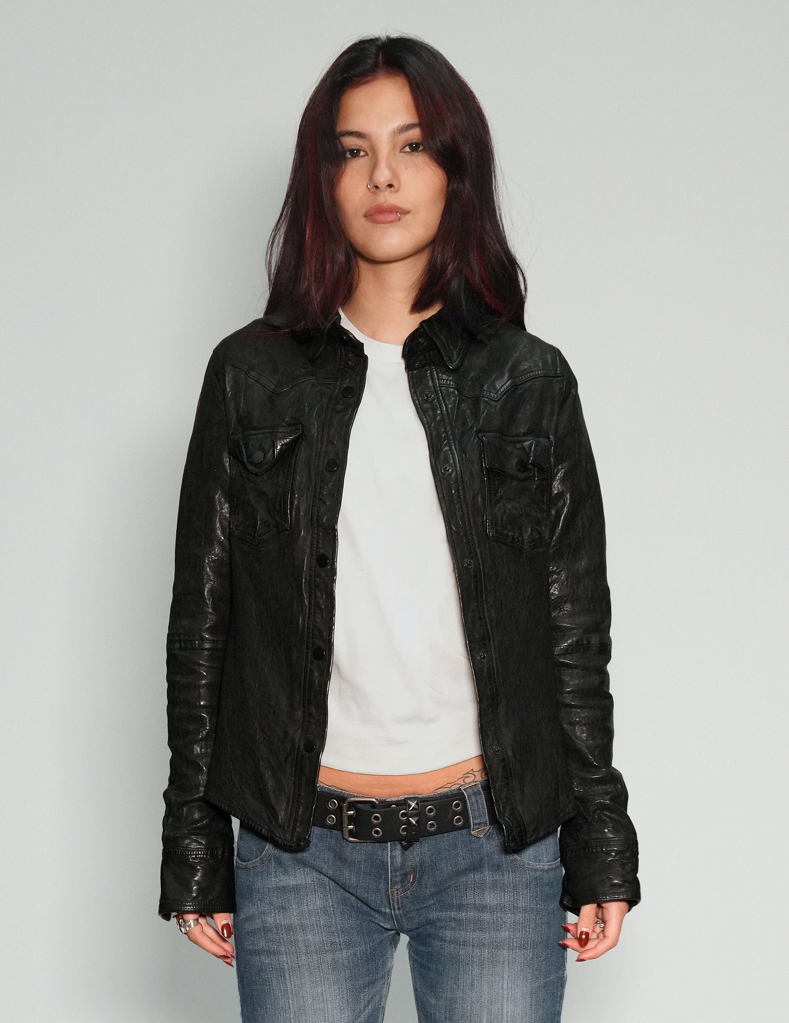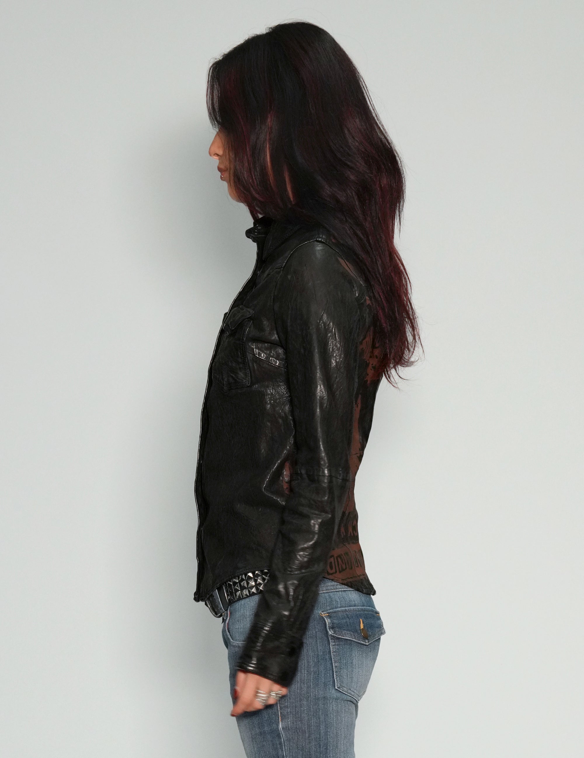 'Peace' Laser Printed Leather Jacket